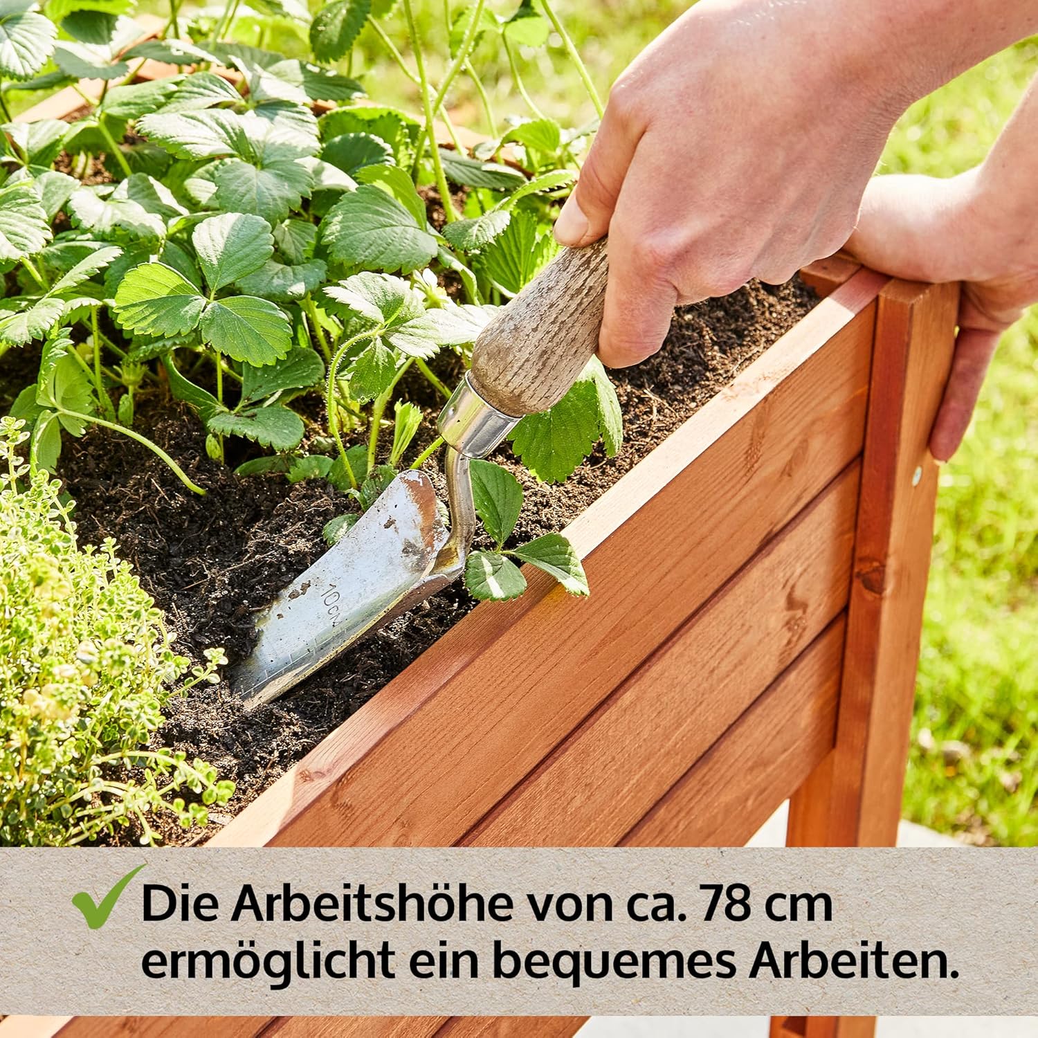 Die Arbeitshöhe von ca. 78 cm ermöglicht ein bequemes Arbeiten, das deinen Rücken sowie deine Knie schont. Schnecken und andere Schädlinge kommen so außerdem nur schwer an deine neuen Pflanzen heran!