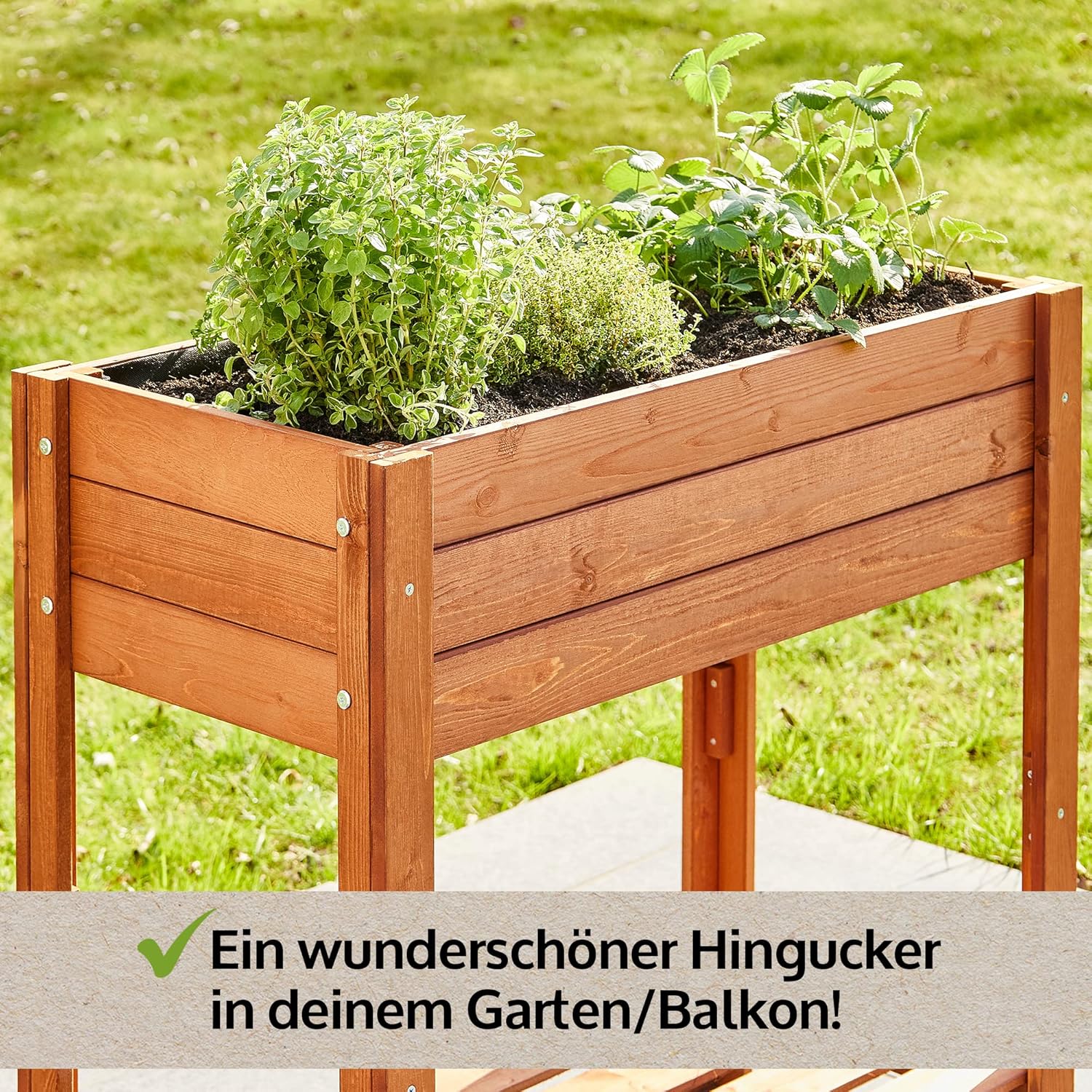 Das schöne 80 x 40 x 78 cm (L x B x H) Hochbeet besteht aus stabilem Holz. Es überzeugt durch die gute Verarbeitung. Das braune Hochbeet hat eine zusätzliche schützende Lasierung erhalten.