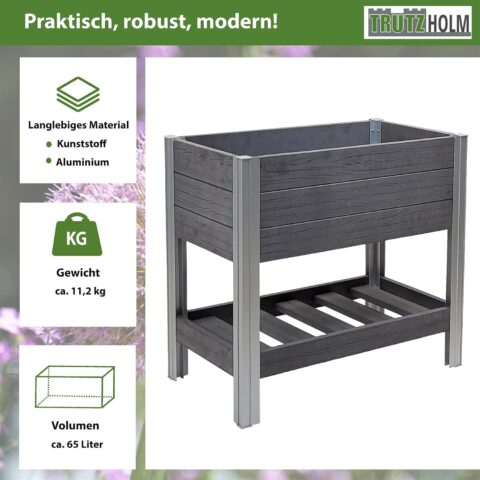 TTL GARDEN Balkon Hochbeet M 80x40x80cm aus Holz – Pflanzkasten & Blumenkasten mit Ablageboden & Folie – Tannenholz wetterfest – Pflanzbeet Kräuterbeet Blumenbeet für Garten Balkon Terrasse – Braun